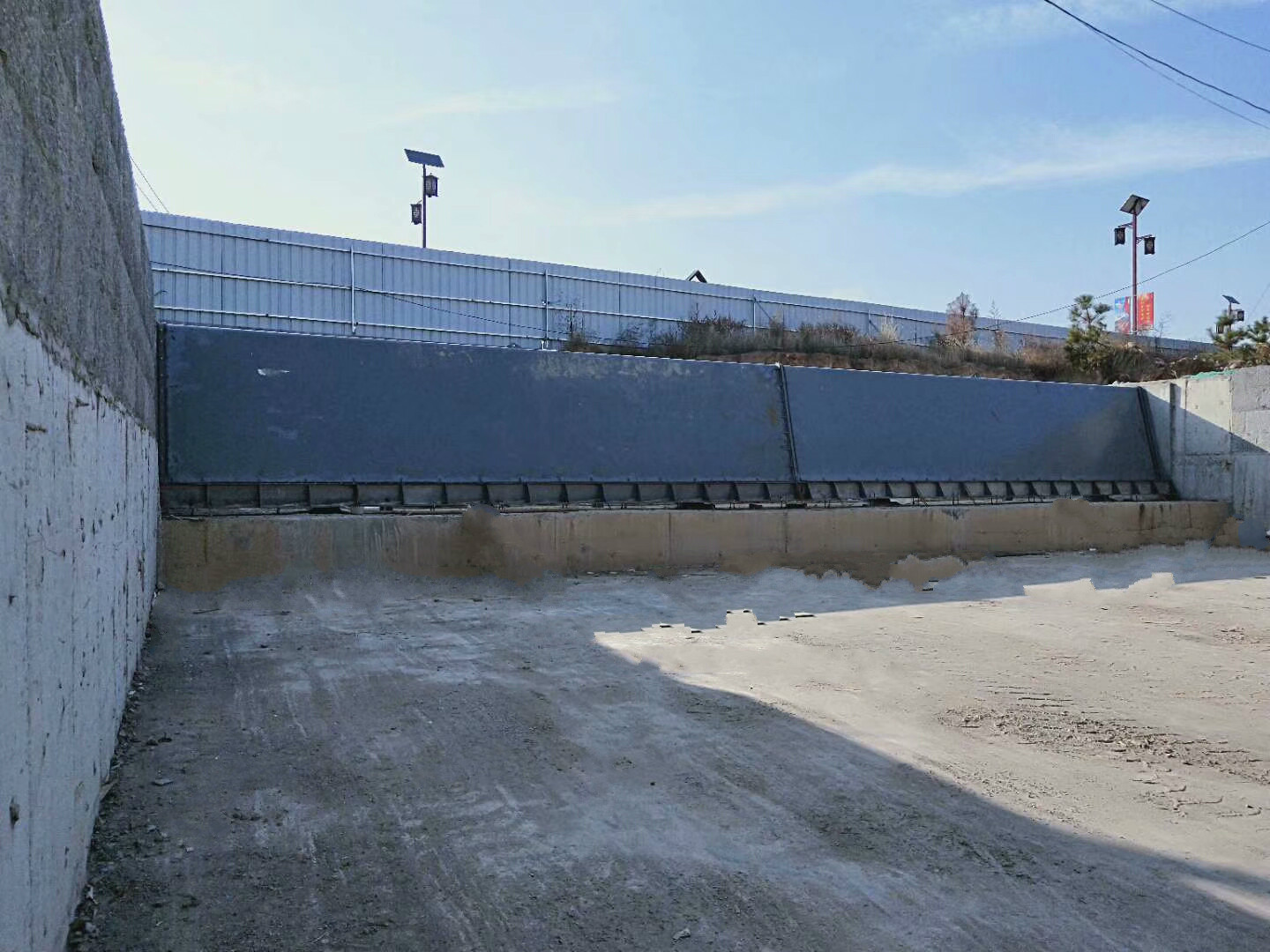 鋼壩是榮程水利生產(chǎn)的20多種閘門中的一種新興閘門,主要就是門頁擋水,將水壓力及彎矩傳遞到門底軸,其中水壓力通過底軸軸承傳遞給閘基礎,而彎矩則通過底軸傳遞給兩軸端的液壓啟閉機。鋼壩閘門全開時,閘門門頁臥于河底,閘孔上方可不設置任何建筑物,阻水作用小,對超標洪水影響微乎其微,而且可以立閘蓄水,臥閘行洪排澇,還可以利用閘頂過水,形成人工瀑布的景觀效果。